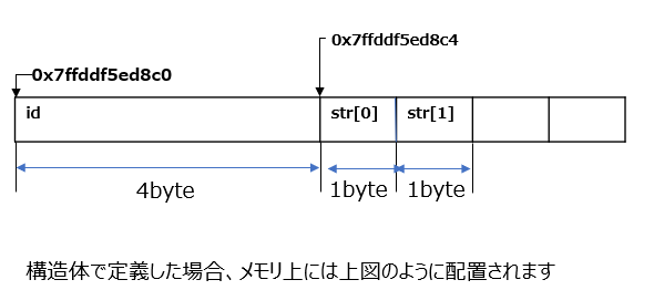 この構造体のメモリ領域は以下のようになっています